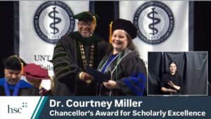 May 22, 2025Congratulations to Dr. Courtney Miller for receiving the 2025 UNT Health Chancellor’s Award for Scholarly Excellence. The Chancellor’s Award for Scholarly Excellence recognizes an outstanding graduate from UNT Health Fort Worth with an emphasis on scholarly research. |