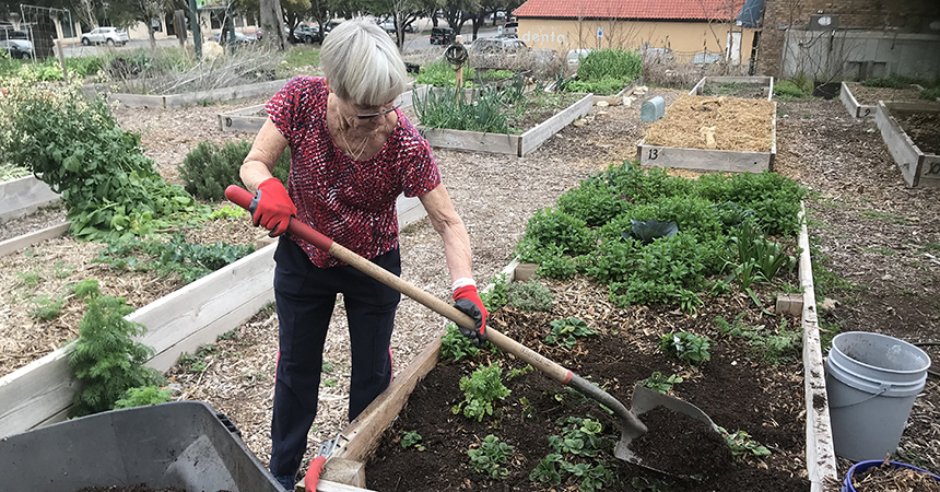 The HSC Fort Worth Community Garden continues to grow fresh organic produce for those experiencing food insecurity during the COVID-19 pandemic — while following guidelines for physical distancing and sanitizing.