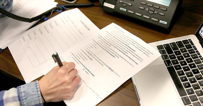 The students will answer phone lines and help support investigators in the field who perform contact tracing and other duties. Contact tracing is the process of identifying and informing people who have come into contact with an infected person so they can take precautions.