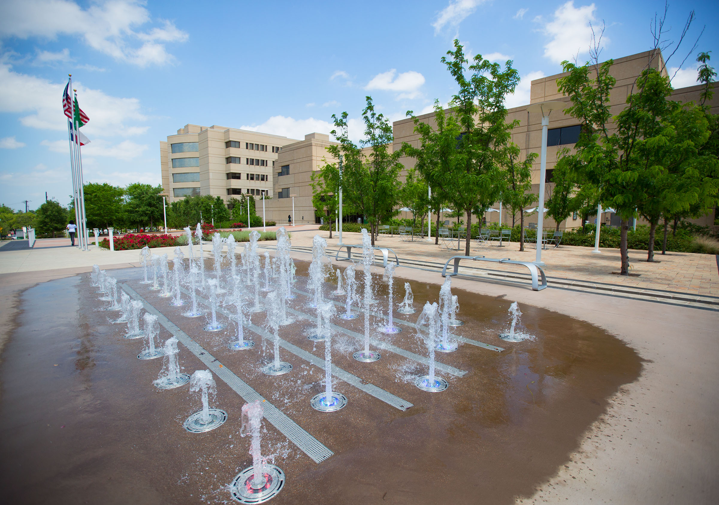 The Library Courtyard is approximately 2 acres of functional green space in the center of campus and is used by UNT Health students and personnel and the larger community. The courtyard improves the image of the campus, generates more pedestrian friendly spaces, creates meeting and social spaces, and reduces the impervious surface area on campus.