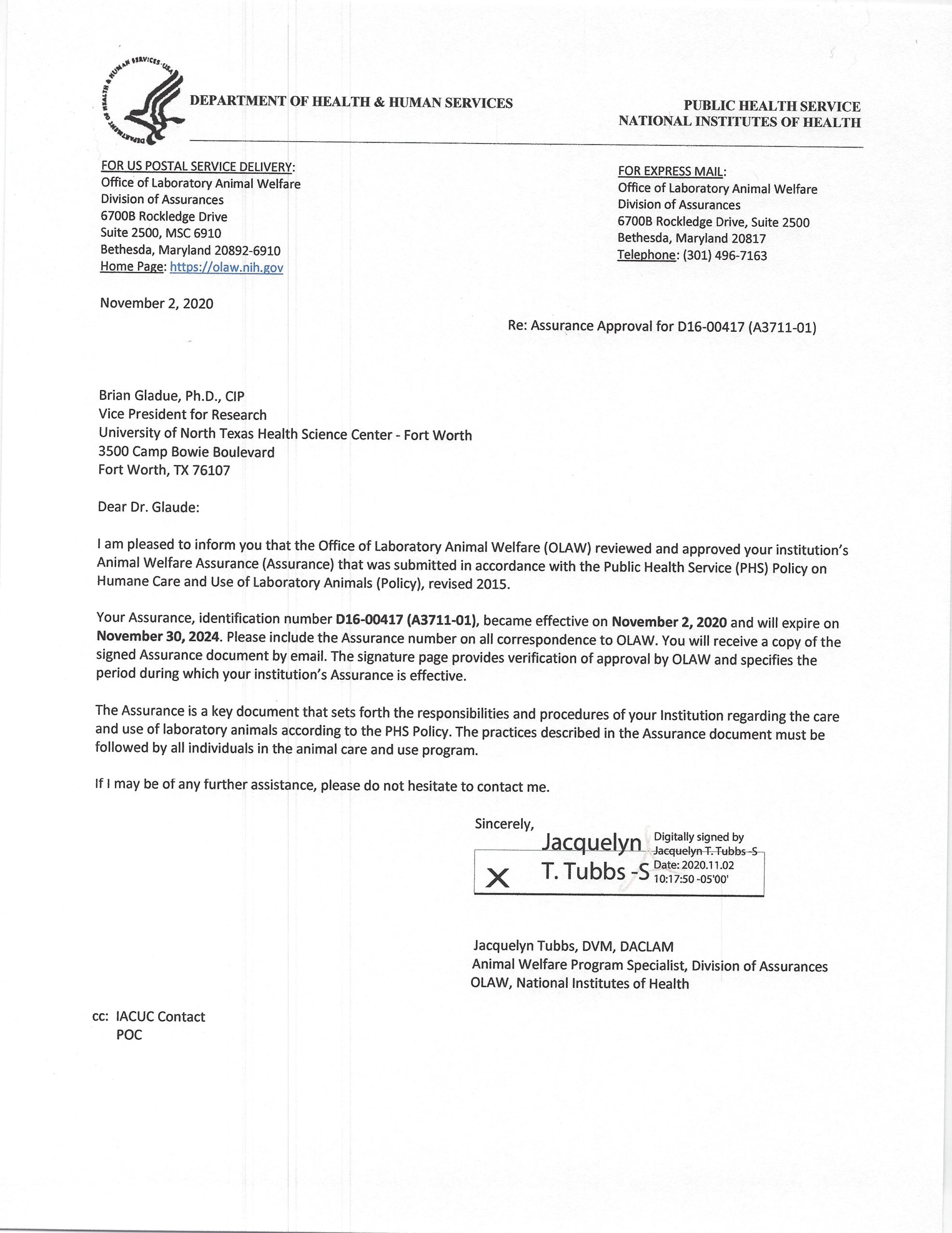 The UNT HealthAnimal Care and Use Program is a voluntary member of AAALAC International, and is subject to a rigorous accreditation inspection/review. The program has maintained FULL ACCREDITATION since February 8, 1985. In the most recent site visit, which is conducted every three years, the Animal Care and Use program at UNT Healthwas commended for “providing and maintaining an exemplary program of laboratory animal care and use…”