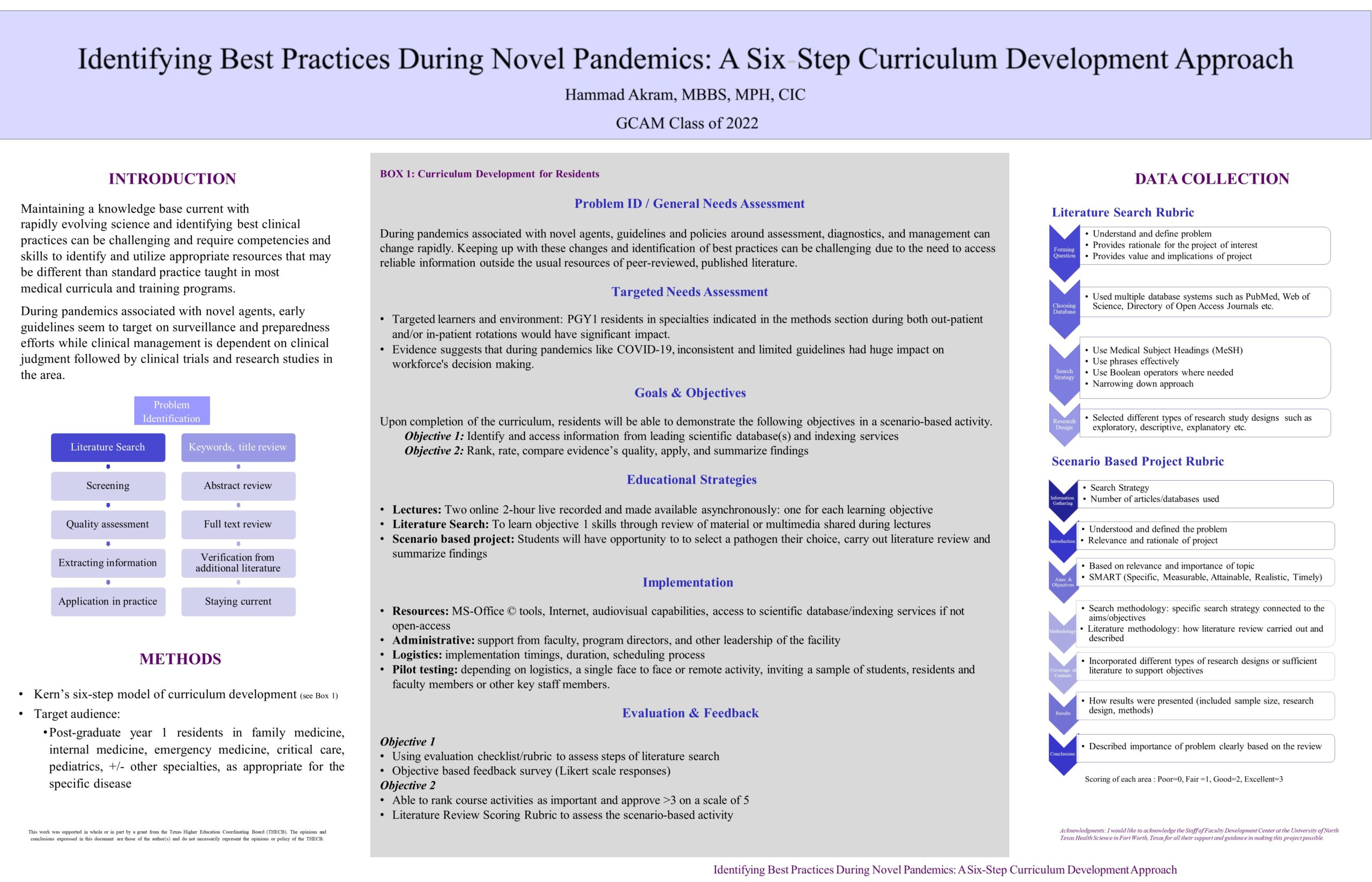 Poster: Identifying Best Practices During Novel Pandemics: A Six-Step Curriculum Development Approach