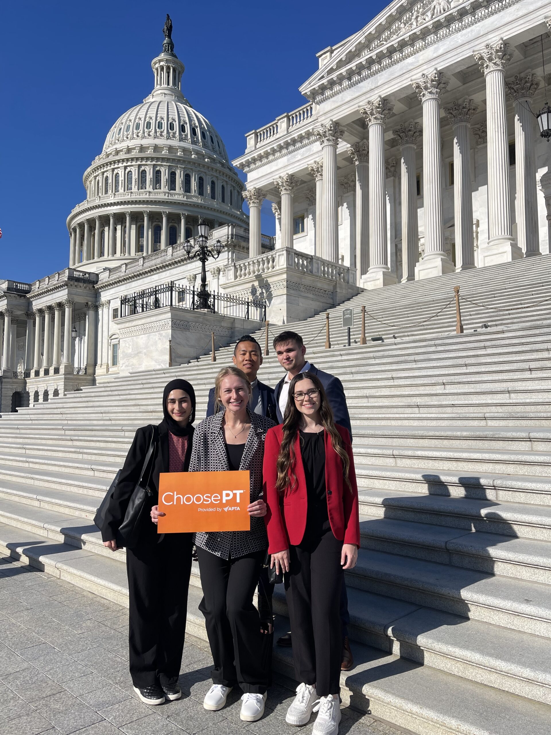 In April, Yun put those skills to use to advocate on behalf of a law that would strengthen Medicare’s preventative measures and preserve telehealth for physical therapists. Yun and four other HSC PT students visited lawmakers in Washington, D.C., to talk about the benefits of H.R.7618, the Stopping Addiction and Falls for the Elderly Act. The quintet was in the nation’s capital representing the American Physical Therapy Association, a trade organization with a mission of advancing the profession.