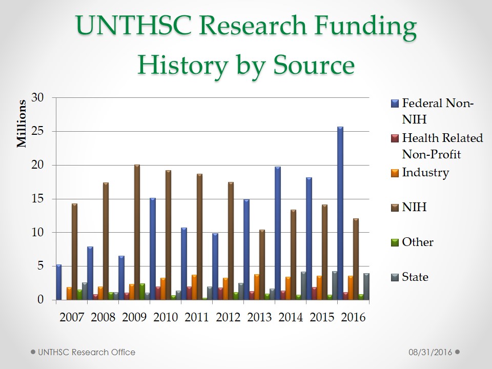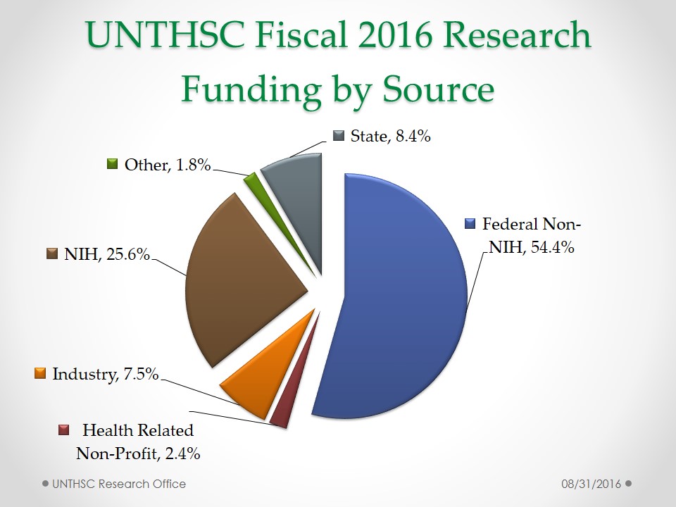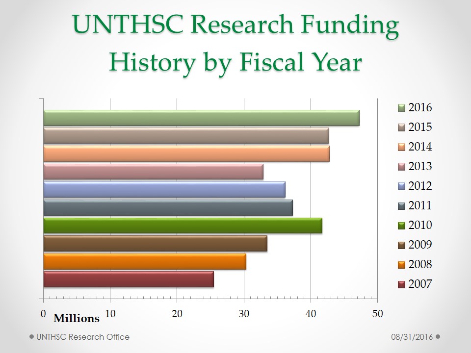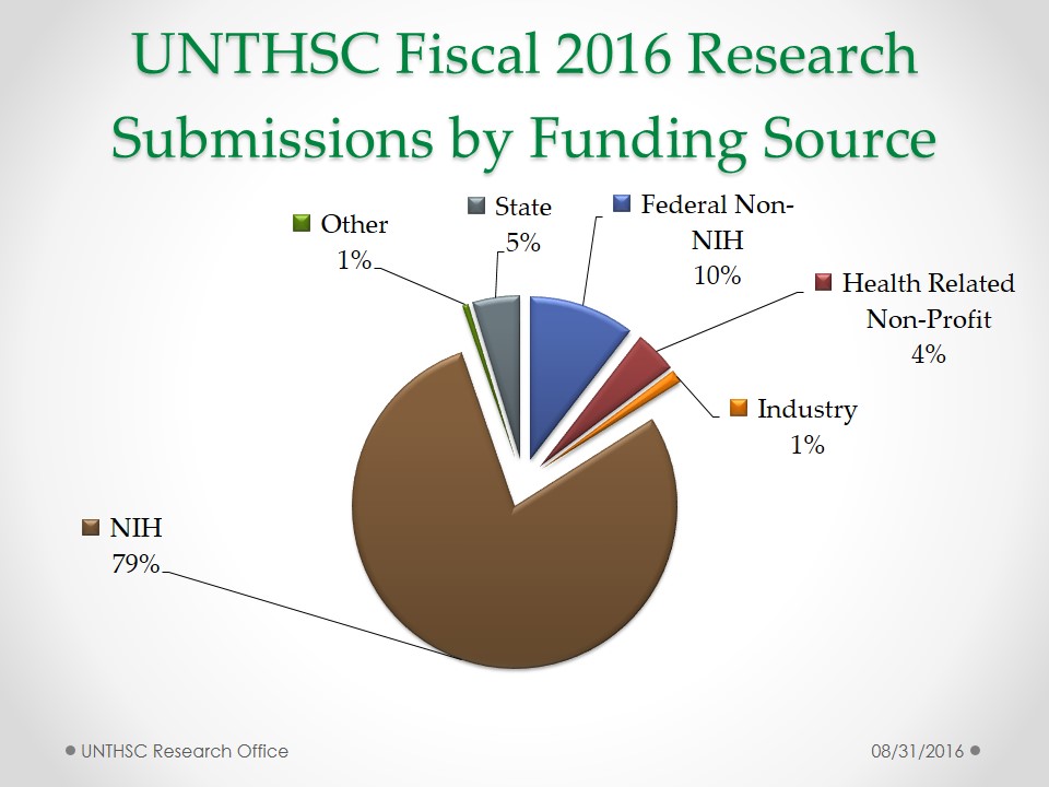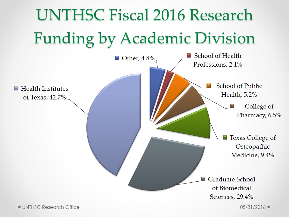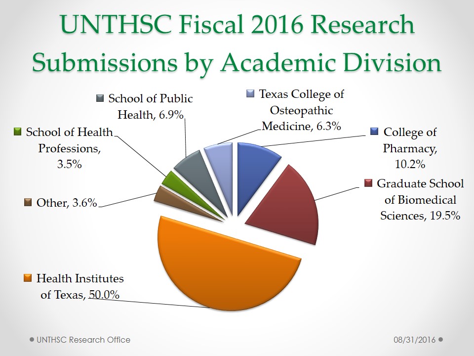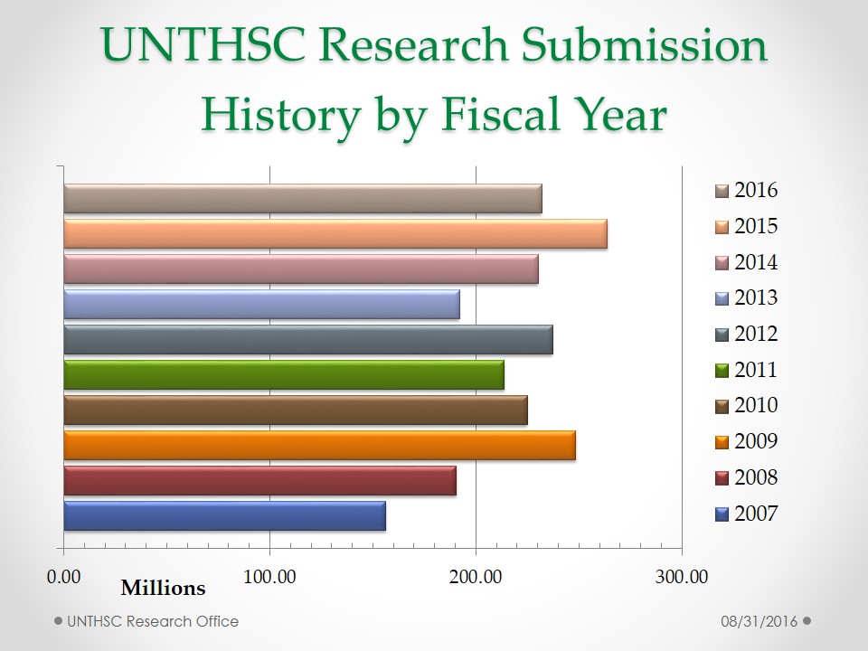 UNT Health Fiscal 2016 Research Submission History by Fiscal Year UNT Health Fiscal 2016 Research Submission History by Funding Source UNT Health Fiscal 2016 Research Submission History by Academic Division